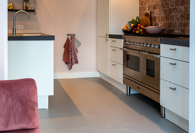 - Dit type gietvloer is vrijwel overal toepasbaar, mits de ondervloer vlak is;